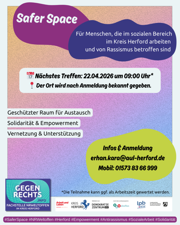 Die Veranstaltung findet in Kooperation mit dem Bündnis "Gemeinsam für Vielfalt" und der Fachstelle NRWeltoffen im Kreis Herford statt.