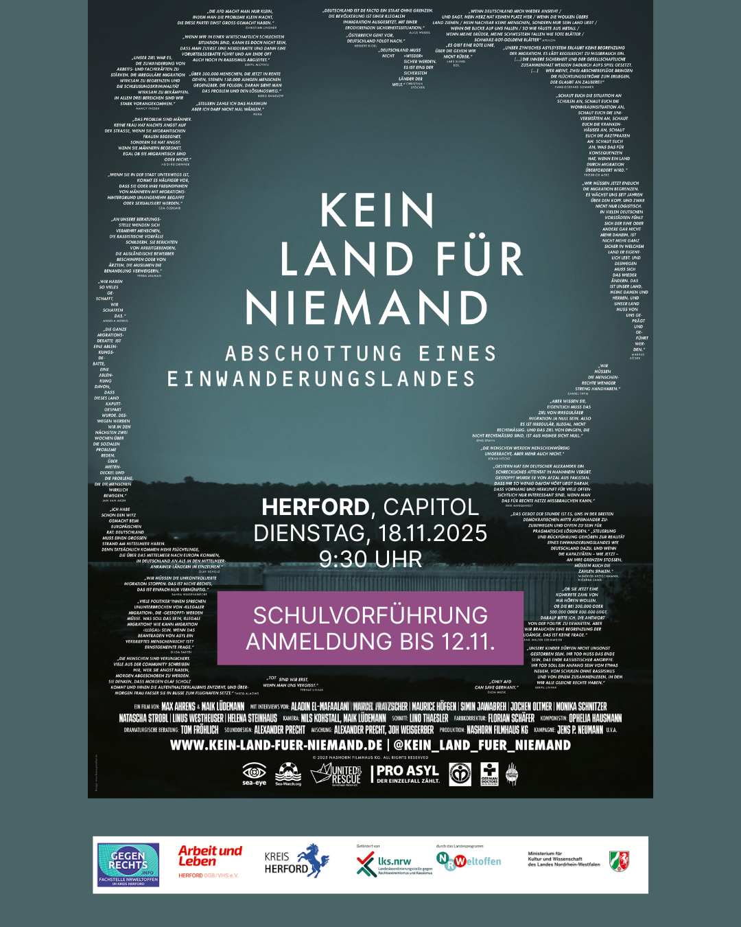 Der 107-minütige Film »Kein Land für Niemand – Abschottung eines Einwanderungslandes« begibt sich auf die Suche nach den Ursachen dieser politischen Zäsur. Die Dokumentation beginnt an den europäischen Außengrenzen, wo eine andauernde humanitäre Katastrophe auf staatliche Ignoranz trifft, aber auch auf ziviles Engagement. Sie begleitet einen Rettungseinsatz auf dem Mittelmeer, dokumentiert die katastrophale Lage aus der Luft und erzählt die Geschichten von Überlebenden, die trotz Gewalt und tödlicher Risiken den Weg nach Deutschland gefunden haben.