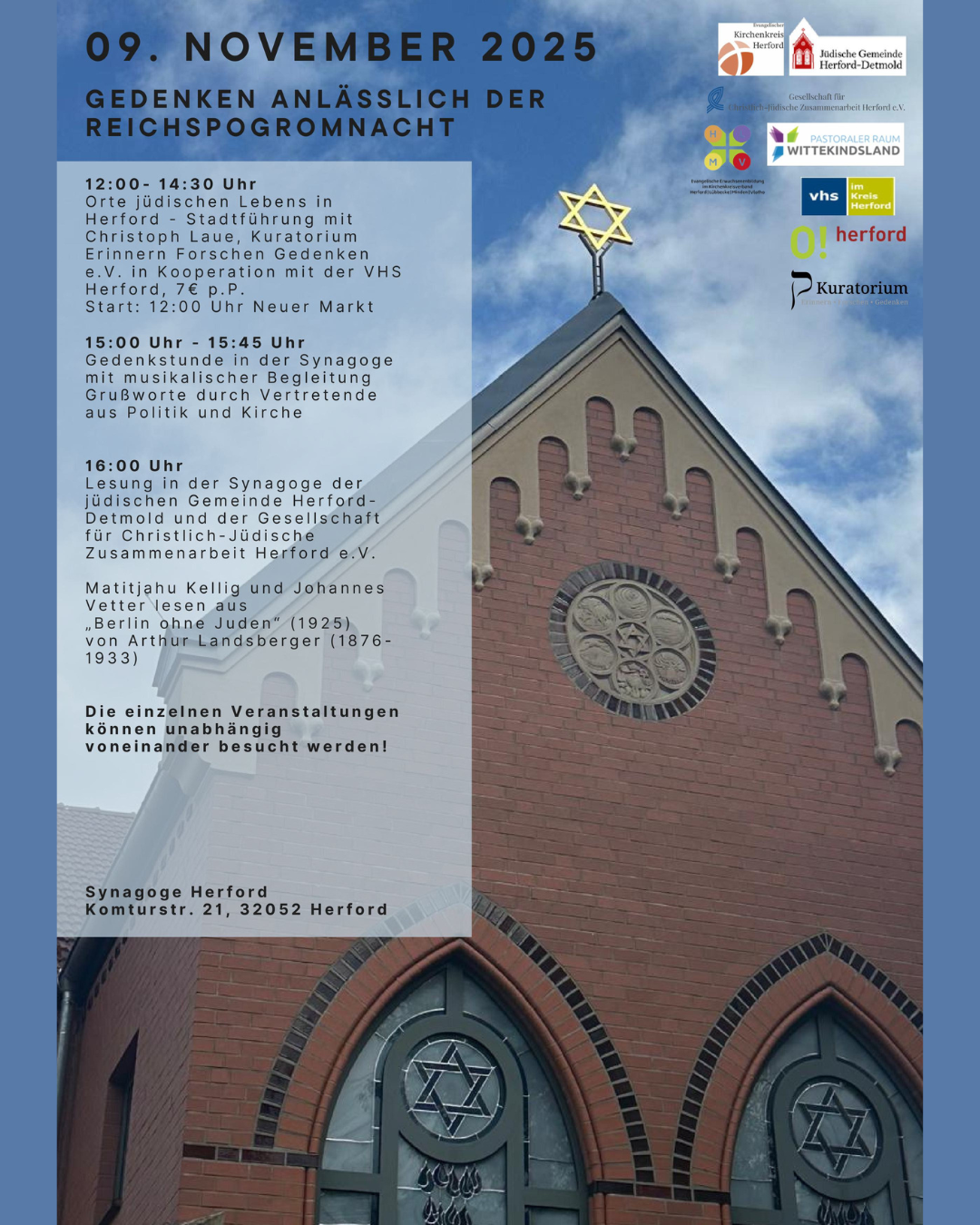 - 12:00–14:30 Uhr – Stadtführung zu Orten jüdischen Lebens in Herford
