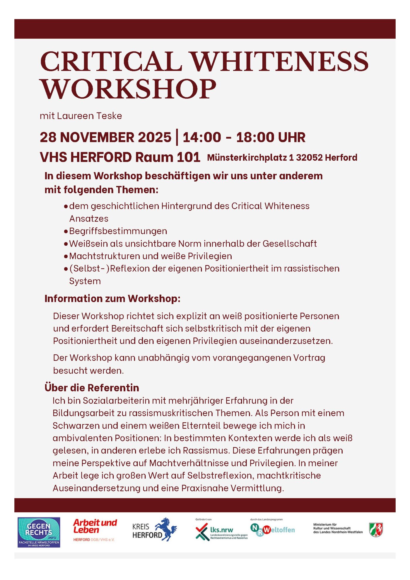 CRITICAL WHITENESS WORKSHOP mit Laureen Teske