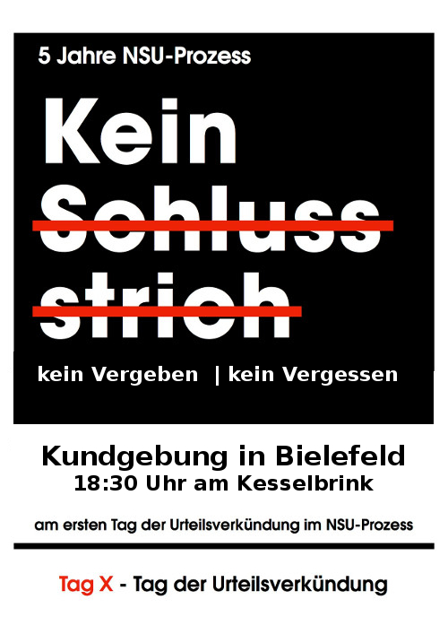 In OWL wird in Bielefeld an diesem Tag an die Opfer des rechten Terror- Netzwerkes gedacht und noch einmal ein Blick auf die vergangenen fünf Verhandlungsjahre und ihre Beteiligten geworfen.